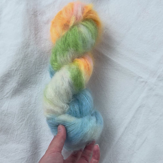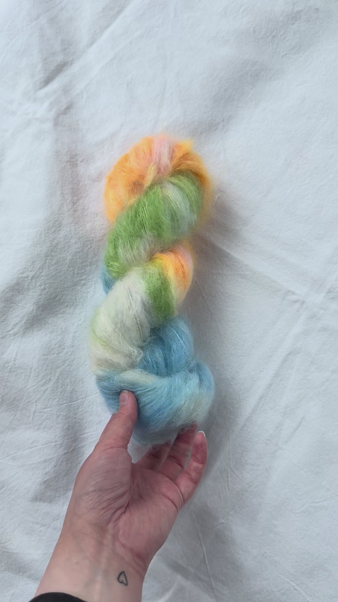 Un-told Chunky mohair er myk og fluffy Non-superwash fat mohair! Garnet er håndfarget av Un-told. Chunky mohair kommer opprinnelig fra Sør-Afrika på gårder hvor mulesing ikke foregår.