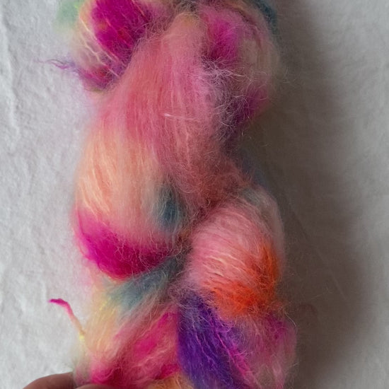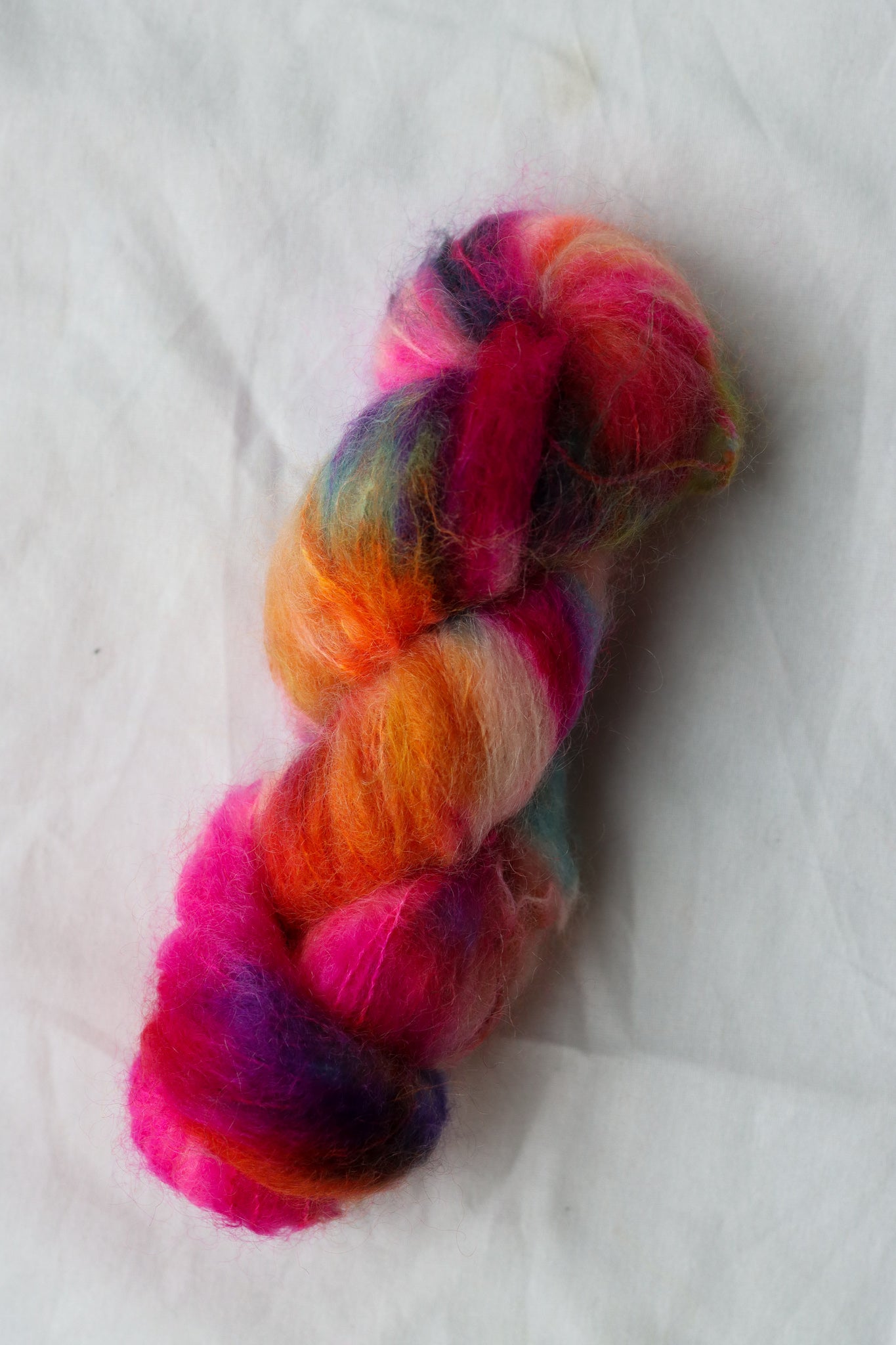 Un-told Chunky mohair er myk og fluffy Non-superwash fat mohair! Garnet er håndfarget av Un-told. Chunky mohair kommer opprinnelig fra Sør-Afrika på gårder hvor mulesing ikke foregår.