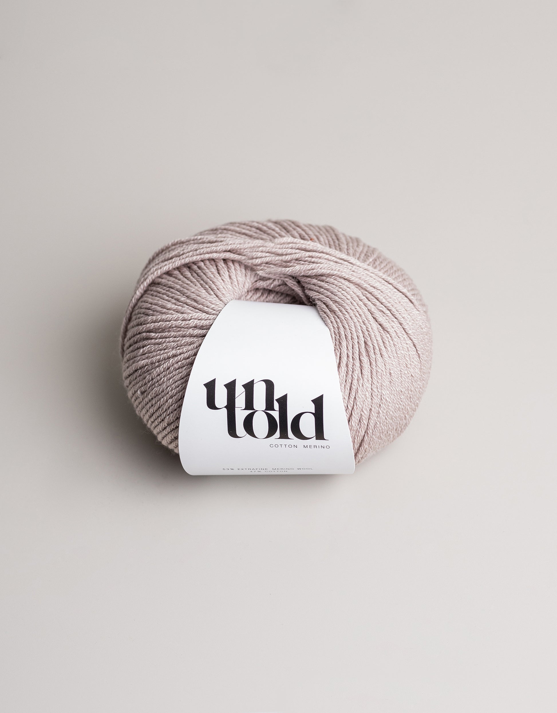 Råvarene til Un-told Cotton merino kommer fra New Zealand (merinoull) og USA (bomull). Merinoen er 100% ren ubehandlet mulesingfri merinoull hvor dyrevelferd er godt ivaretatt. Garnet er ikke super- wash behandlet og produseres etisk og miljøriktig i Italia.