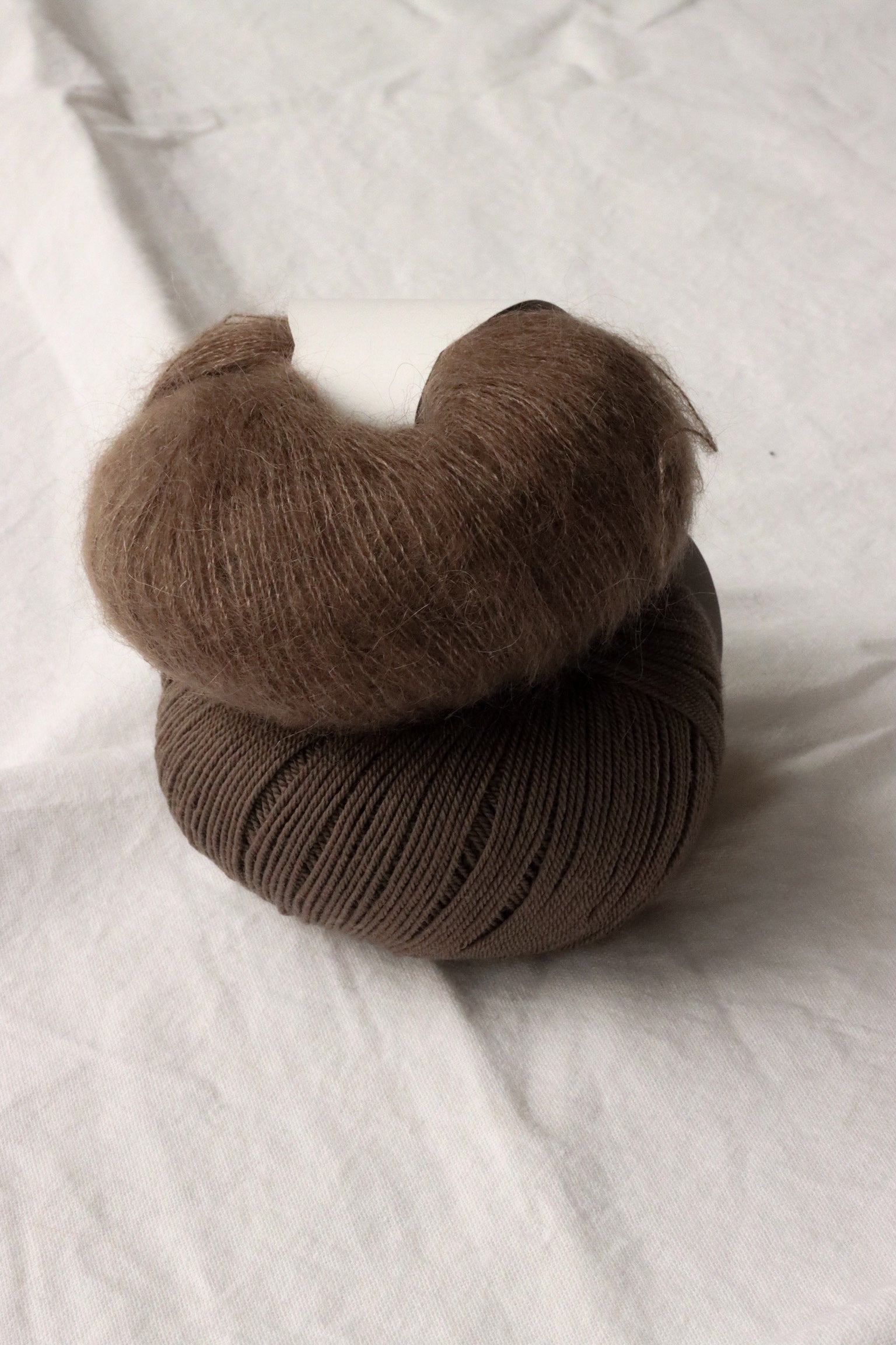 Clay Light merino kan matche med Pure silk mohair i Extra Greige og Moody Grey