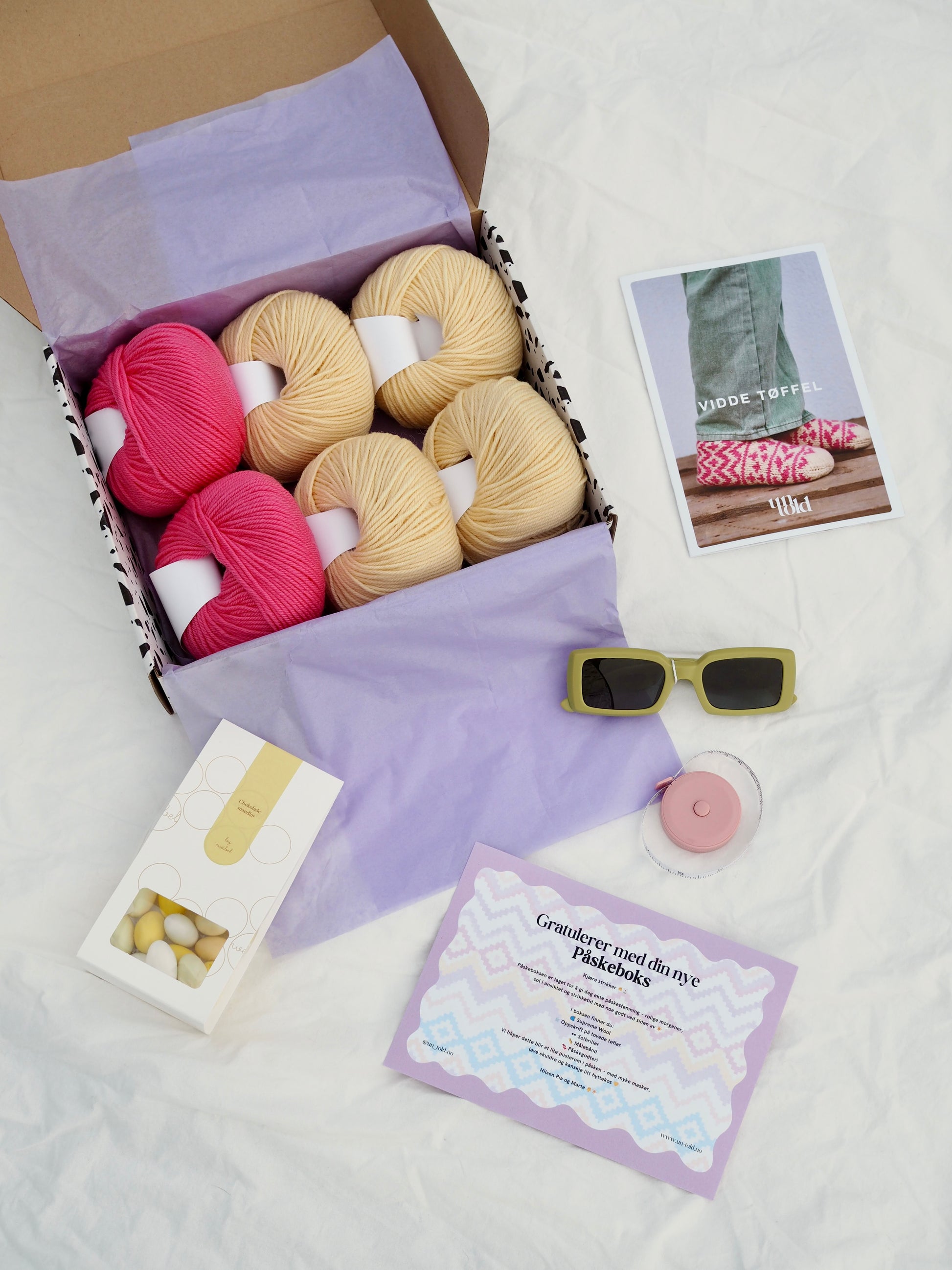 En gjennomtenkt boks satt sammen for å gi deg strikkelyst, påskestemning og et lite pusterom i hverdagen ✨
