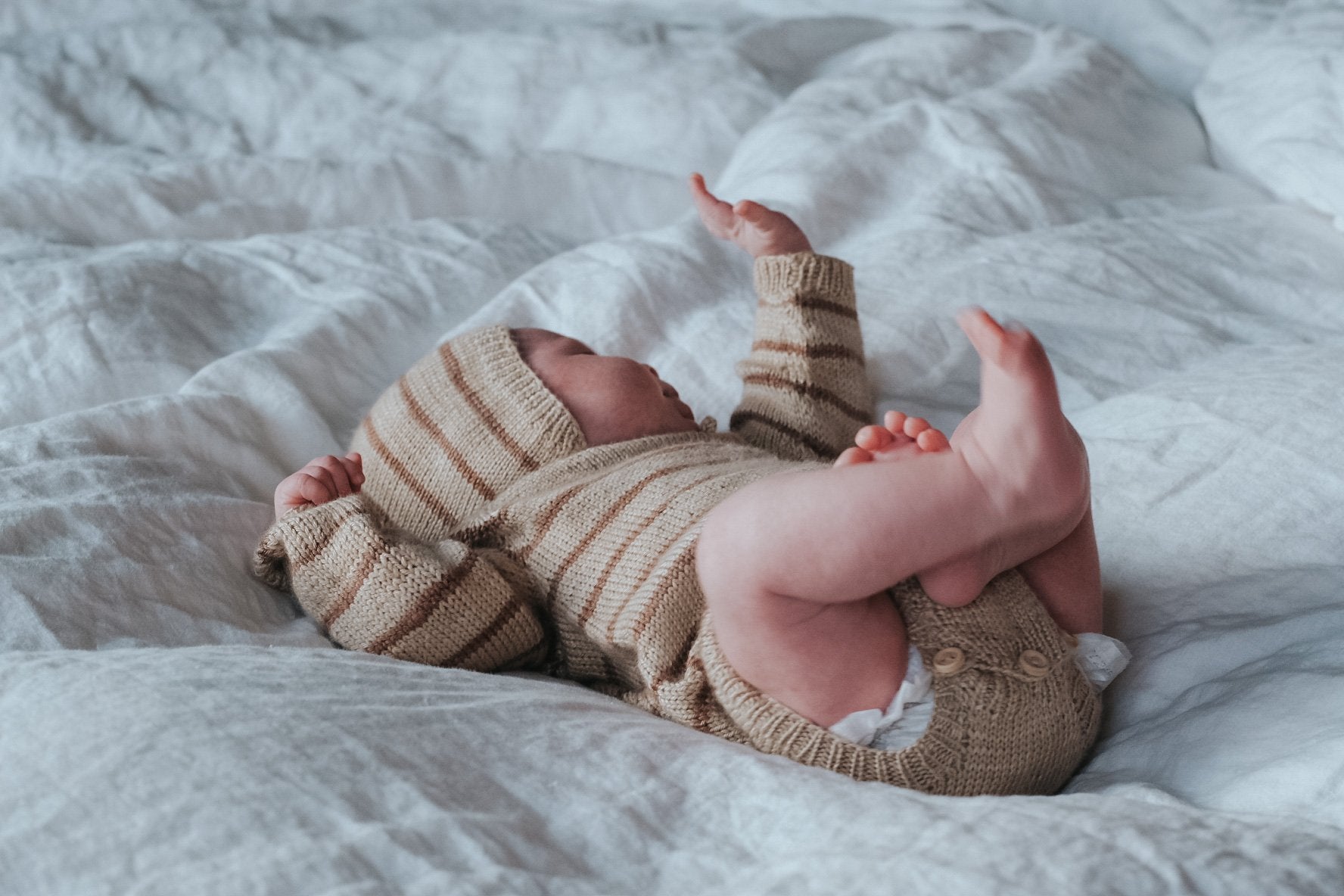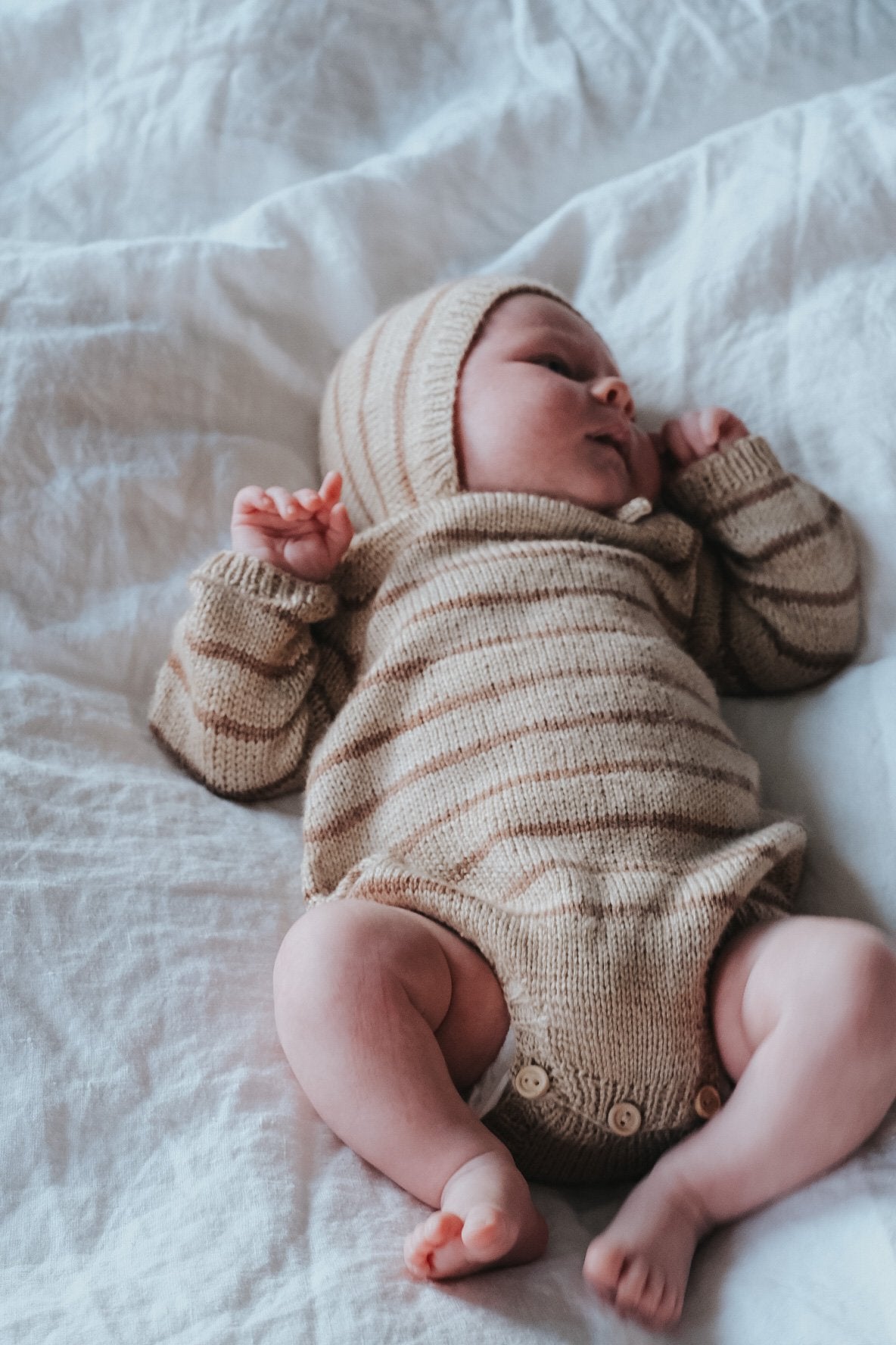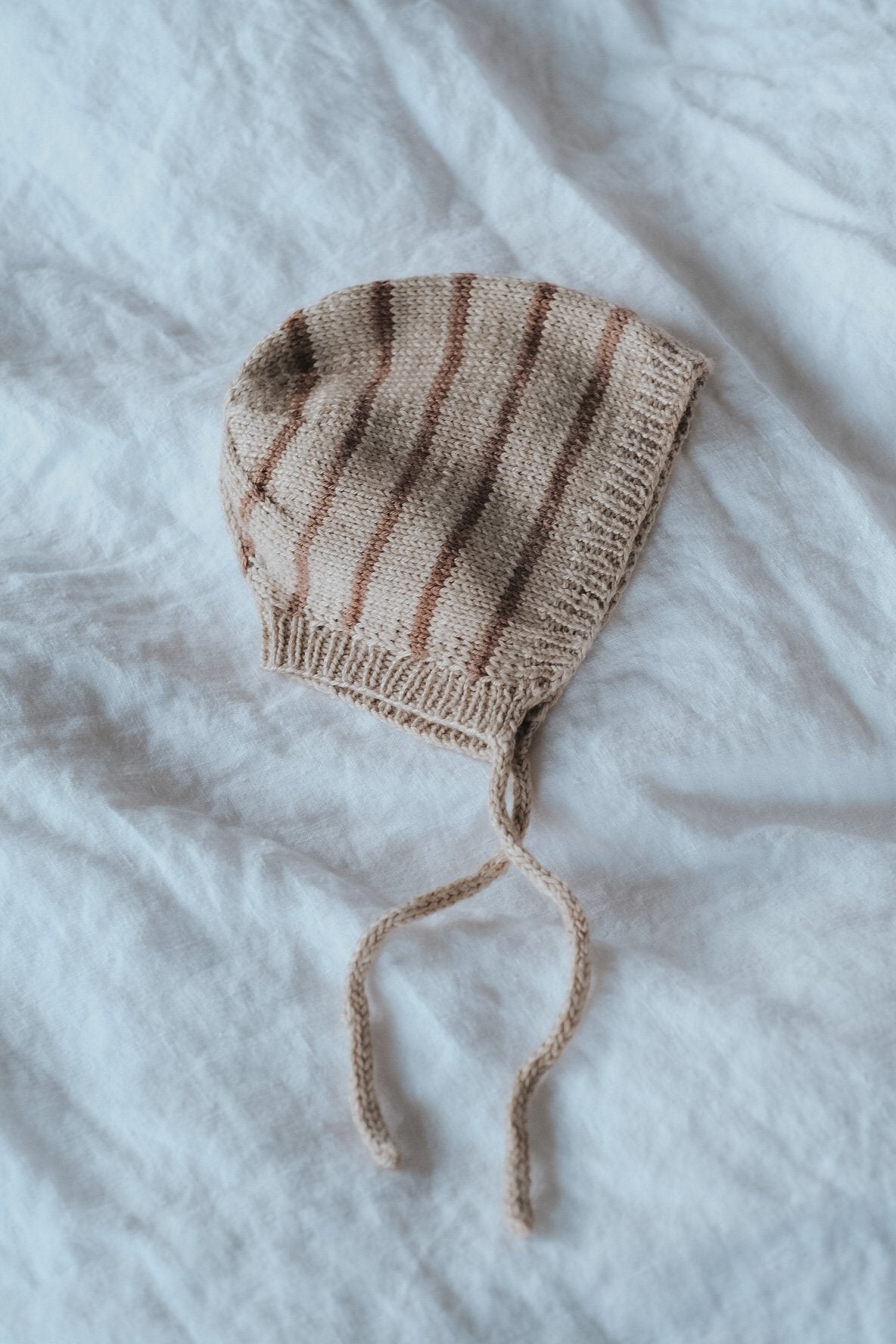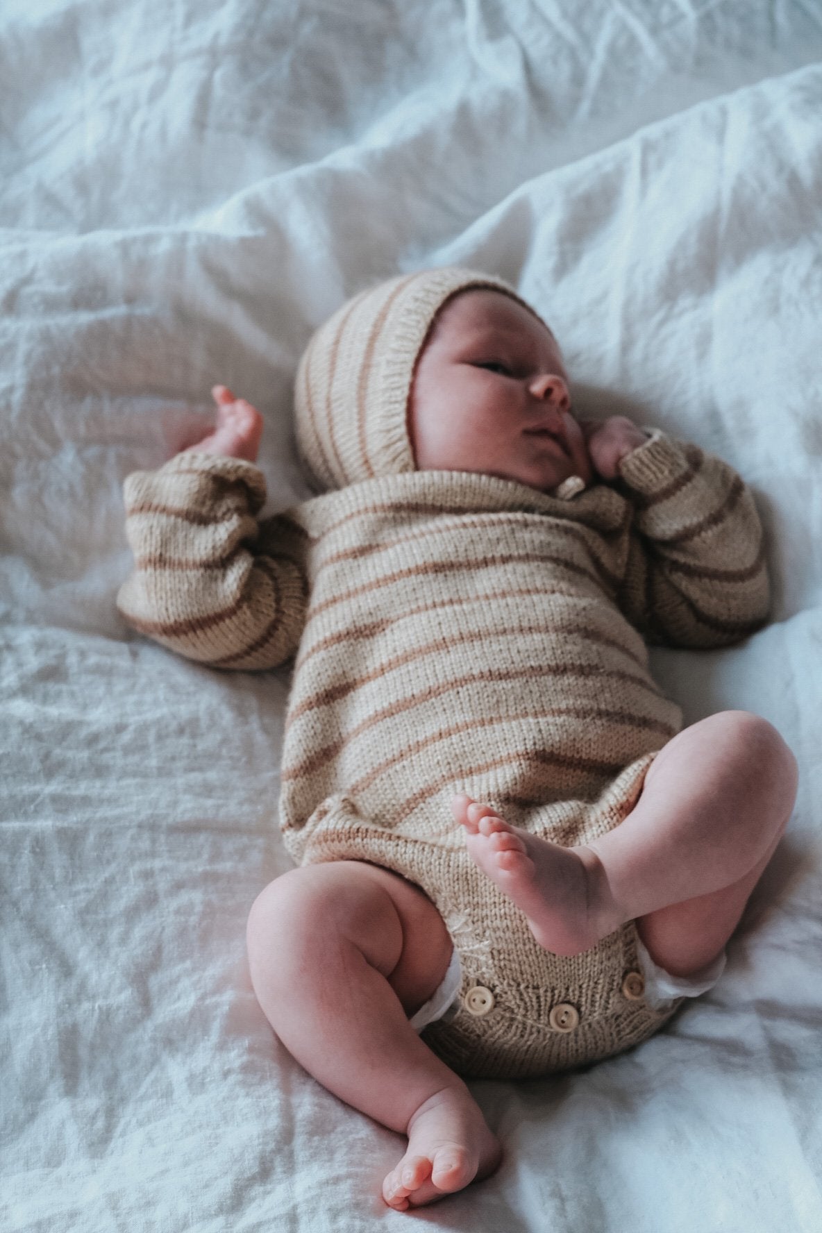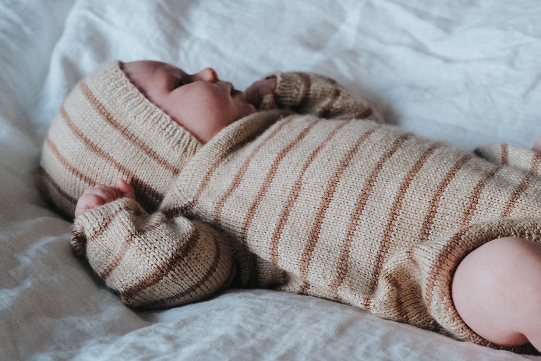 Der Willy Body ist ein simpler, gestreifter Body, der von oben nach unten gestrickt wird. Zuerst werden Maschen mit einem proviso- rischen Anschlag am Halsausschnitt anges- chlagen. Sobald der Body fertig gestrickt ist, were am provisorischen Anschlag Maschen for einen I-Cord Abschluss aufgenommen.